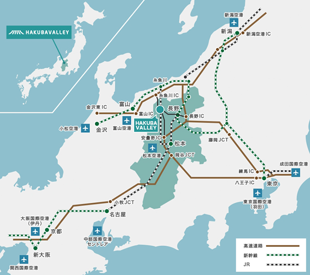 Tokyo Area to Nagano (recommended departure from Ueno or Omiya Station) by Shinkansen: approximately 1 to 1.5 hours