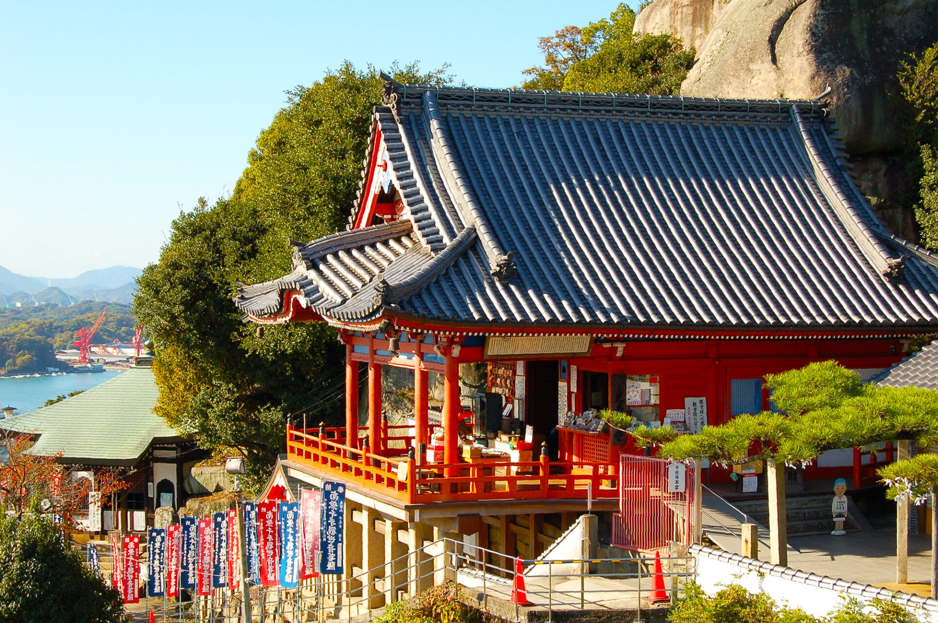 When I visited the temple with Fukumoto-san, he pulled me into an alleyway of sorts, sandwiched between the grey stone of Mount Senkoji and the temple’s main building. He gestured up at a big flat circle that had been carved into the rockface, “This is Kagami Iwa, Mirror Rock. It’s said that a mirror was once placed within that depression, and sunlight and moonlight alike would reflect off it, visible from even a good ways away. Some say this was done out of a belief that gods reside in mirrors. Others say the mirror functioned similarly to a lighthouse, signaling ships as they traversed the Seto Inland Sea.”
