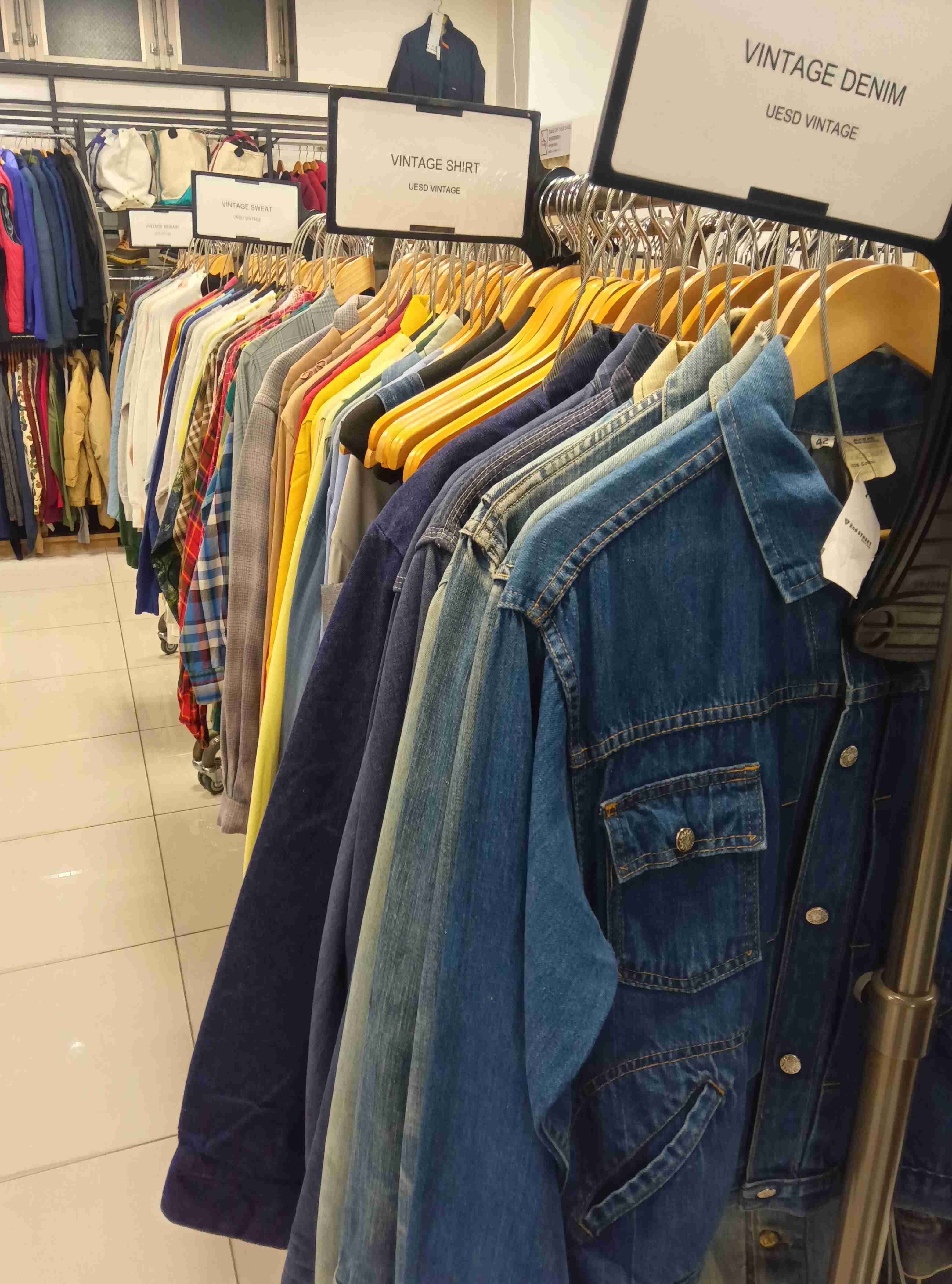 The variety is incredible. One shop might focus entirely on military surplus, with camo jackets, field coats, and heavy boots lined up in neat rows. Another might look like a time capsule from the 1970s. Others are chaotic, with clothes piled high in baskets, prices scribbled on signs, and the promise of a 200-yen gem hidden somewhere inside.